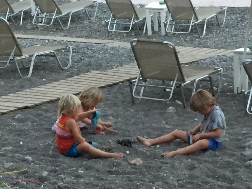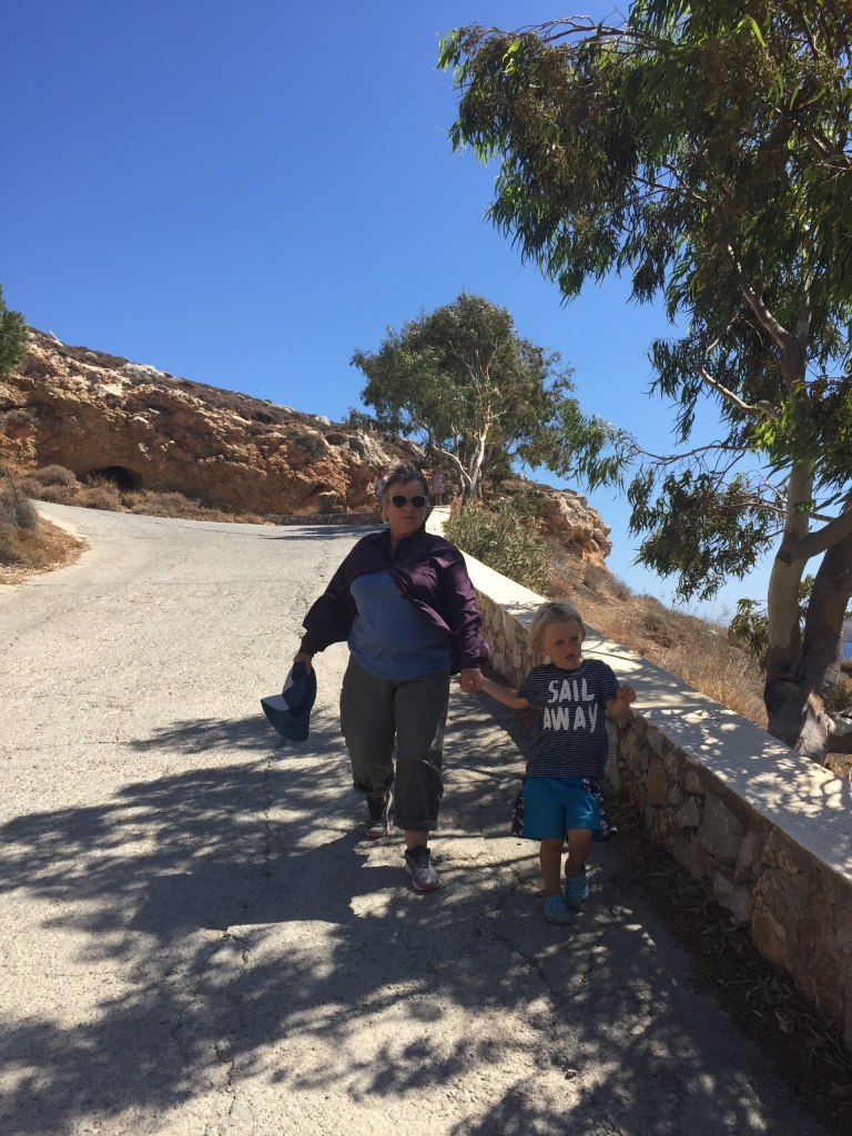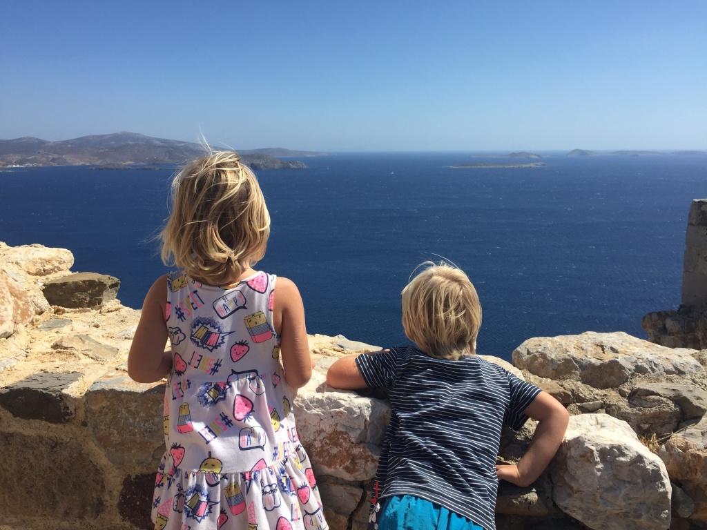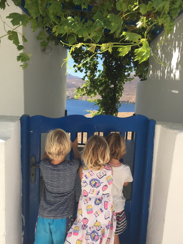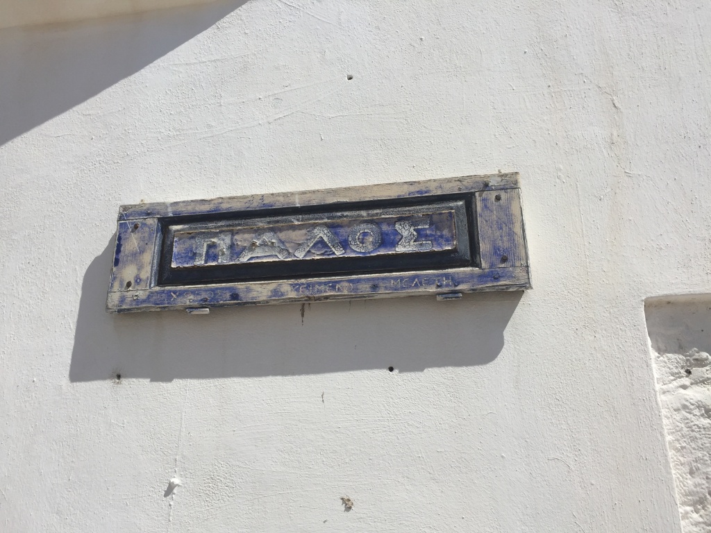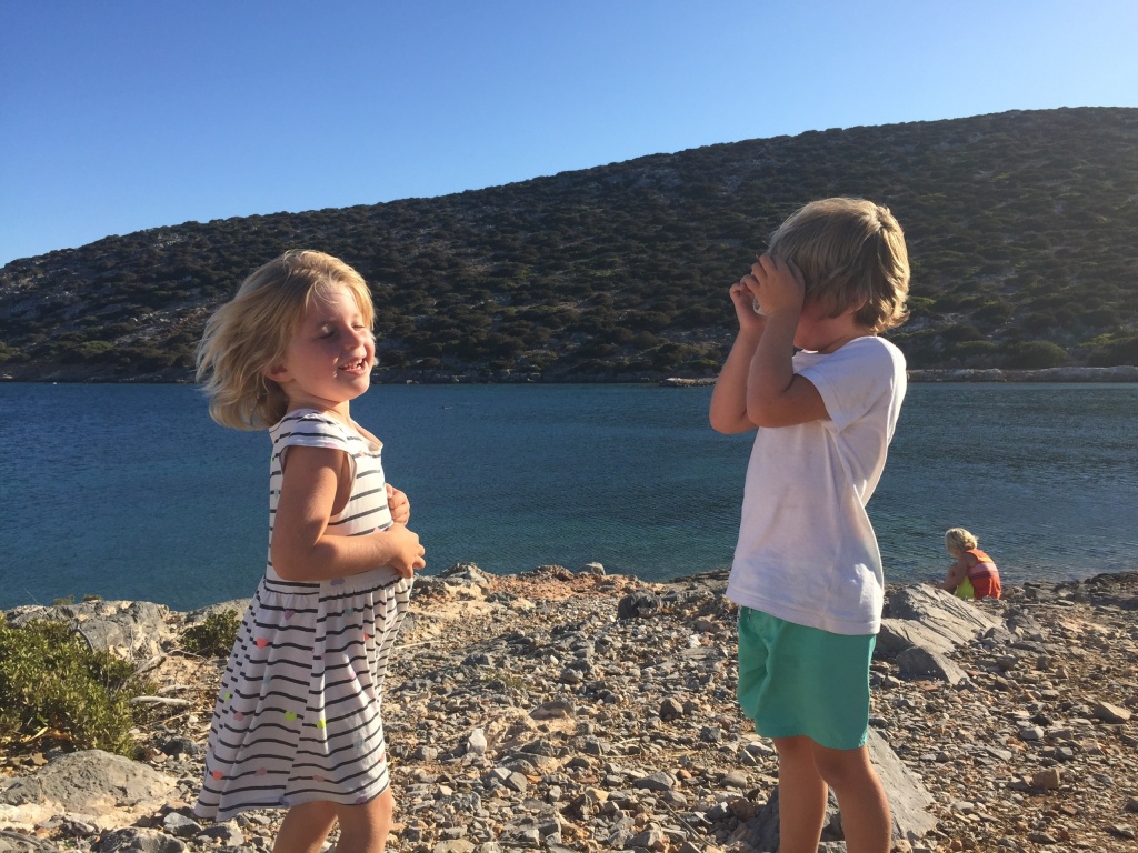 It turned out that we would be in a quiet little bay on Astipalia island. It was an interesting place, with an abandoned factory and a ruin of a boat winch, and off course a beautiful little white-and-blue church. The kids did a great job decorating granddad’s birthday cake. We ate the entire cake between the 7 of us and called it lunch…