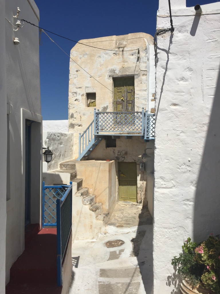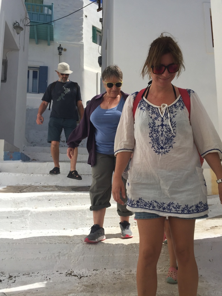 The next day we took the bus up Chora and enjoyed wandering around the pretty old houses, windmills and off course the castle. We had iced coffees and milkshakes in an Australian-Greek cafe an then walked back to Skala – going downhill is so much easier!