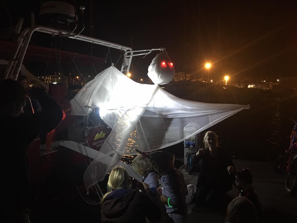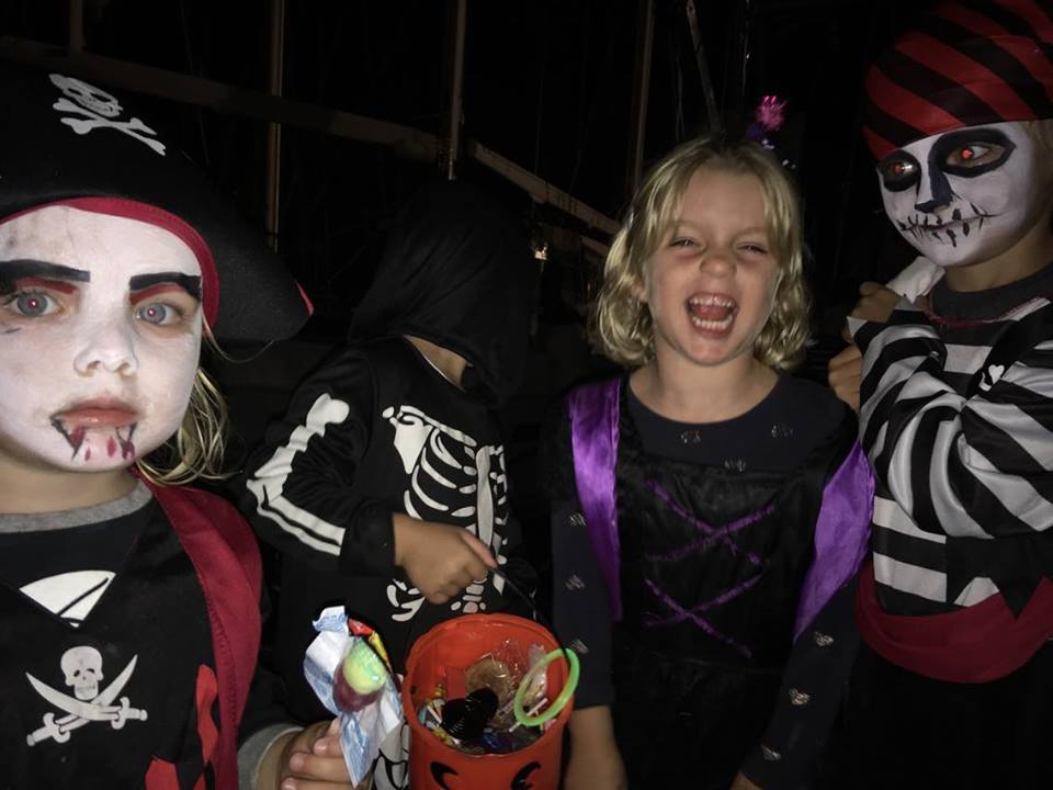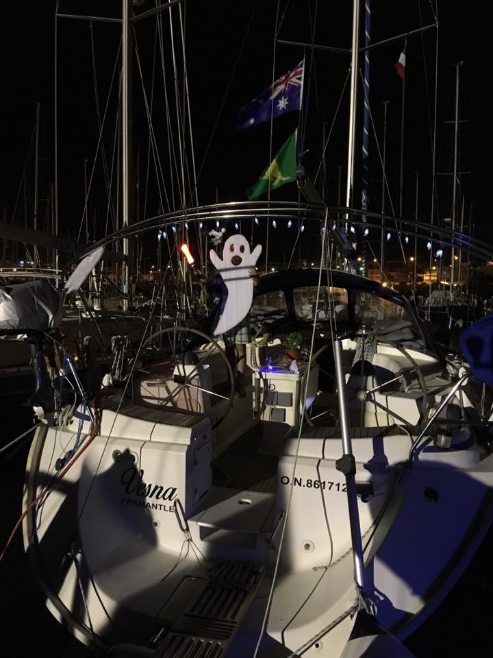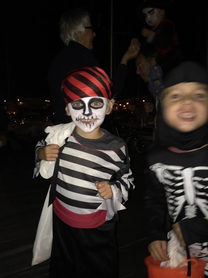 Halloween is one of our kids’ favourite holidays. They had been counting down for at least 60 days… We had great fun going around the marina trick-or-treating. 14 kids were in the marina at the time. They all went along the boats together, with us parents in tow off course. The kids’ sweets buckets were overflowing pretty soon, so my white-sheet ghost costume came in handy as a sack to carry all the loot home in! Some boats were spookily decorated, much to the hilarity of the children.