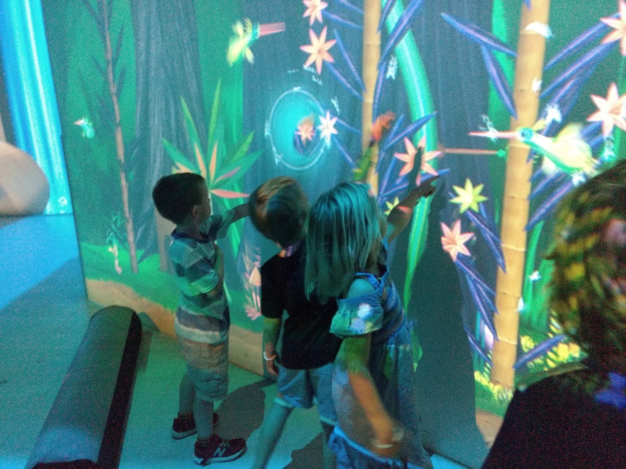 We enjoyed the hall of mirrors, the coloured shadow wall, and design area. The kids loved the hall with interactive video walls. They could make plants grow and manipulate the “world” by movement. It was like being inside a video game.